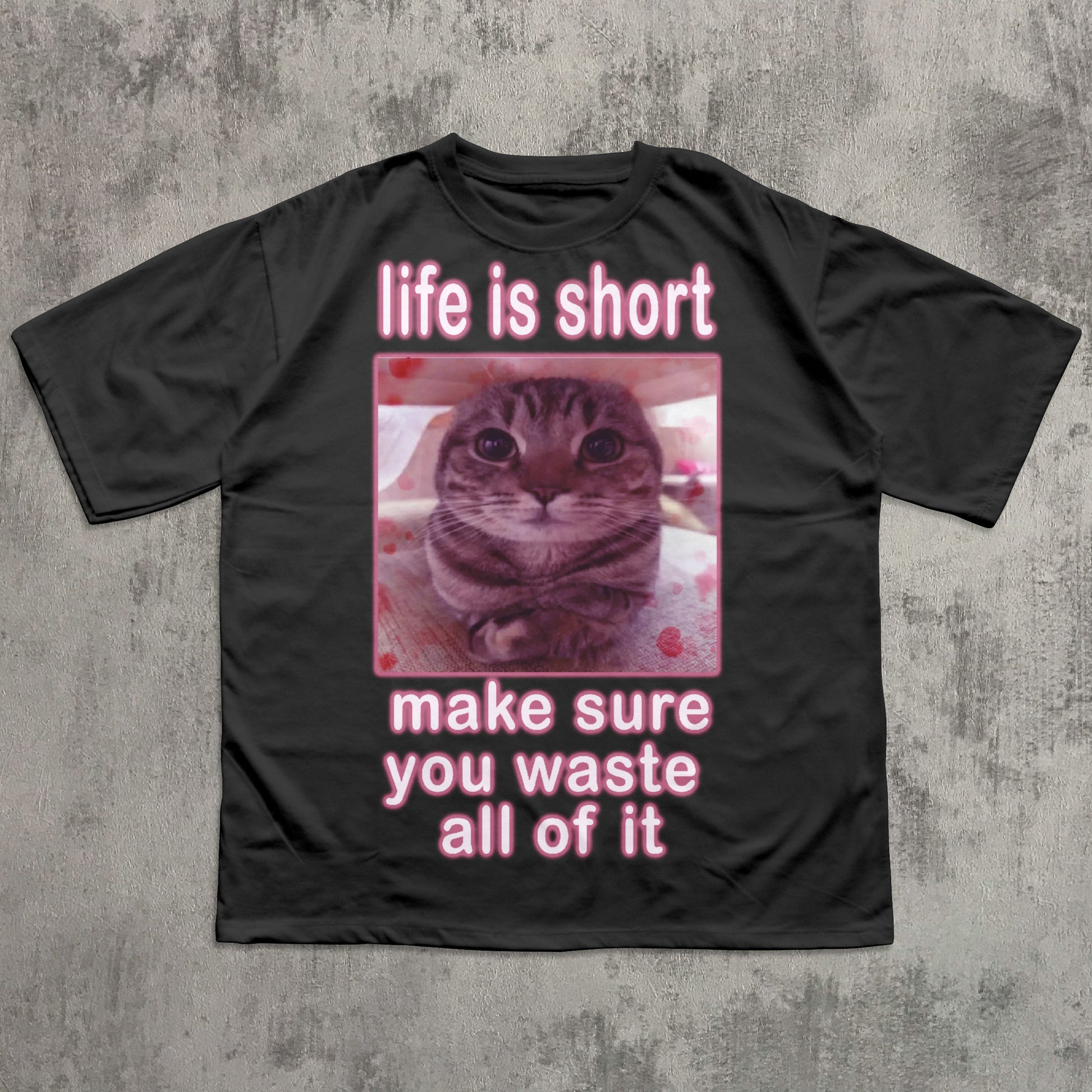 Life is short make sure you waste all of it Funny Cat Meme T-shirt